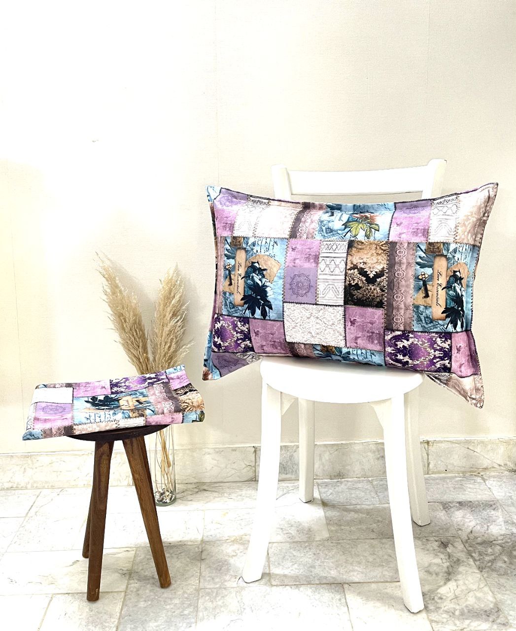 روبالشتی مخمل مبلی طرح باسکی بنفش دو رو طرحدار